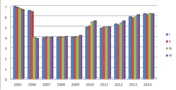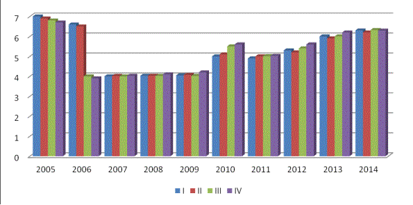 1 Непогашенные не льготные кредиты, 2005-2014 (в миллиардах СДР)