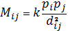 – деяка міра значущості об'єкта (чисельність населення міста i та j);