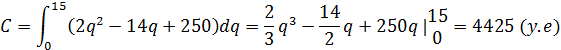 Знайти функцію витрат C = C ( q ) і обчислити витрати у випадку виробництва 15