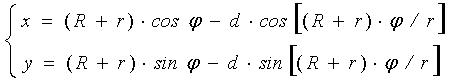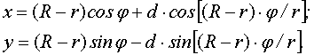 с кругом радиуса r точки М, находящейся дальше или ближе от его центра на расстоянии d, при качении его без проскальзывания по неподвижному кругу