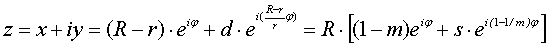 уравнение циклоидальной кривой задано комплекснозначной функцией: z(φ)=x(φ)+iy(φ). Радиус