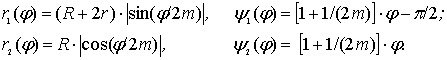 структуру, а графики r1(φ), r2(φ) для m=1представлены на рис.2.