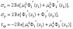 компонентов напряжения можно получить, используя аналитические функции ![]()