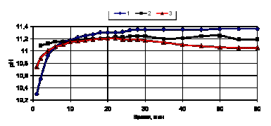 суспензий равна 11,09. Кинетика гидратации вяжущих изучалась