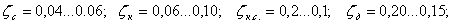 коэффициенты скорости рабочего сопла, камеры смешения, диффузора и входа в