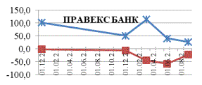 Наочно дію такої «пастки» у період 2013 – 2015 років представлено на рис. 1 на прикладі 12 банків