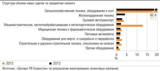 специальное оборудование, скот остаются основными предметами лизинга. Доля