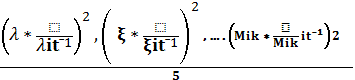 (λ* / λit-1)²,( ξ* /ξit-1)²,….(Mik* /Mik it-1)2 (II).