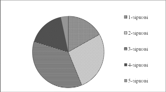 визнаною. Готелі класифікуються за системою від однієї до п’яти зірок, а також