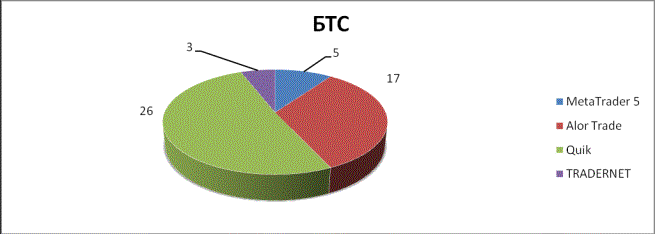 second one is Alor Trade software. It was chosen by 17 respondents. The quantity of chosen BTS is shown in Figure 2.