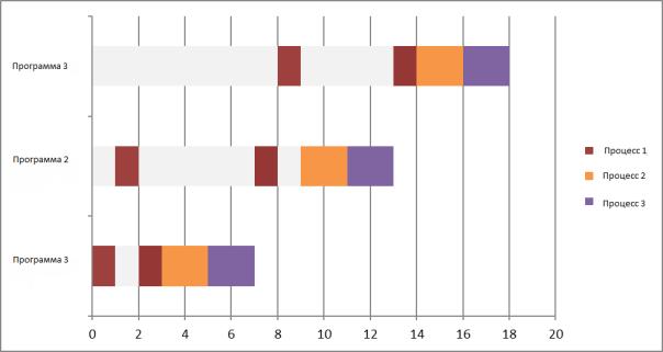 но в программах 2 и 3 он вынужден ждать окончания выполнения менее приоритетных