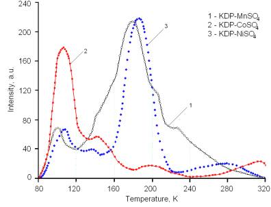 Fig. 1. TSL curves of activated KDP crystals. Radiated dose – 150 kGy.