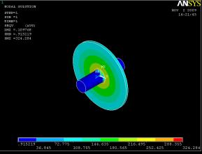 спрощеної моделі ротора центрифуги (рис.4), максимальні напруження мають місце