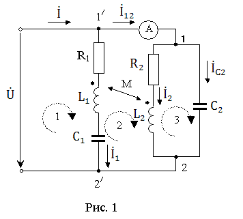 Для схемы (см. рис. 1) определить токи в ветвях схемы, коэффициенты