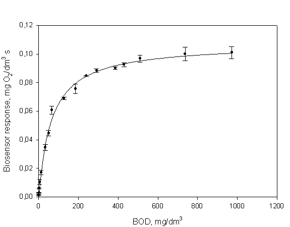 1. The calibration dependence of biosensor response by BOD