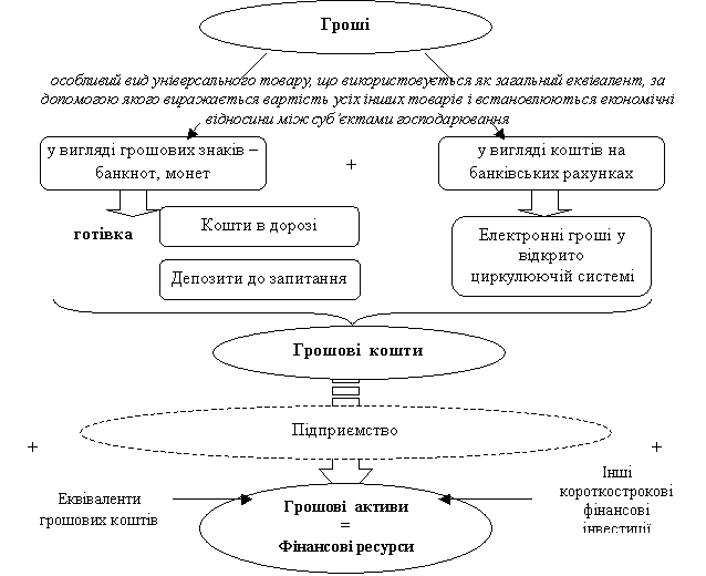 кошти», «фінансові ресурси» та «грошові активи» наведено на рис. 1.