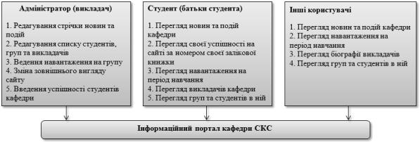 доступу для різних категорій користувачів інформаційного порталу кафедри.