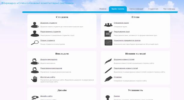Спроектований портал кафедри (рис. 4) надає можливість викладачам