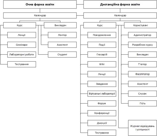 нових об’єктів навчального процесу (або зміни ролі вже існуючих), зокрема: