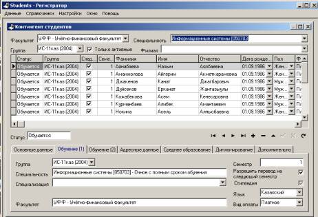 Контингент студентов. Заносятся абсолютно все личные данные о студенте