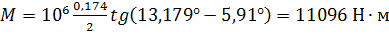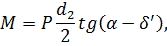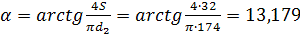 0,1 / (cos15 °) = 5,91 ° - приведений кут тертя в нарізі;