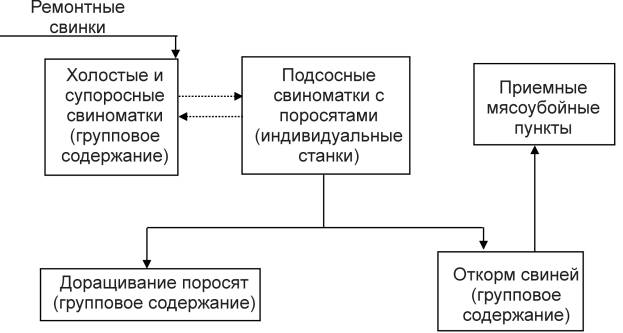 проводиться. Технологическая цепь при содержании свиней приведена на рис.1.