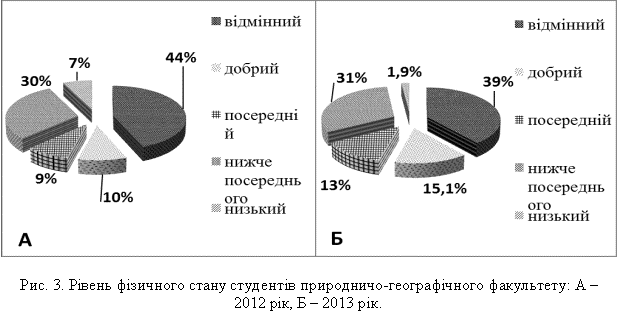 фізичного стану студентів природничо-географічного факультету виглядали так: з