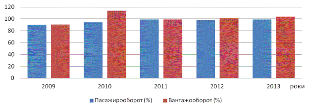 перевезень вантажів за 2009 рік. Вантажооборот зріс на 12,5% і становив 38697,2 млн т./км або 113,8%. В цьому ж році