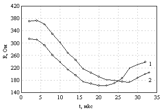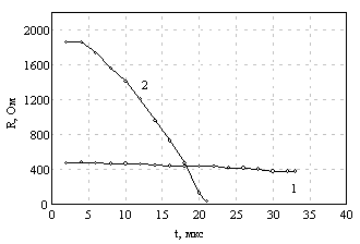 На рис.2 и 3 приведены изменения сопротивления электролита во времени в