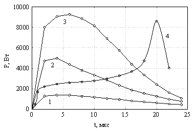 импульсного напряжения. На рис.4 приведены мощности, выделившиеся в канале