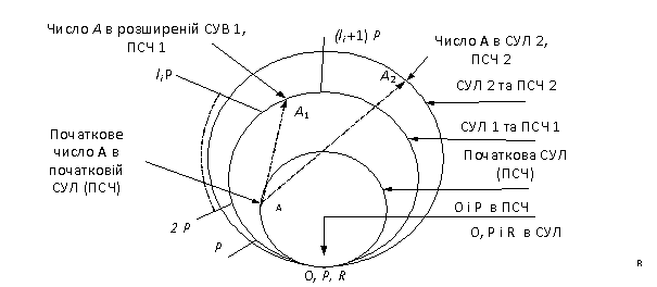 діапазон представлення чисел розширюється до R = Р∙рk, тобто складається із рk піддіапазонів Р. Для представлення числа А в