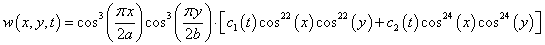 Функция w(x, y, t), определяемая выражением (8), удовлетворяет граничным условиям. Введем обозначения