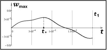 Отношение максимального прогиба к толщине оболочки, в момент времени t*, будет равно wmax/h = 0,148. Данная величина не превышает 1/5, что соответствует введенной гипотезе малых прогибов.