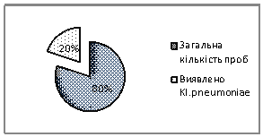 мікрофлори. Виявлено Klebsiella pneumonia у 20% від загальної кількості