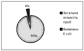 дослідженні бактерії групи кишкової палички в пробах не були виявлені, крім однієї