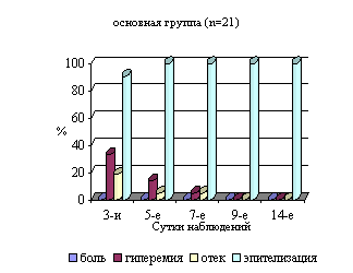 гиперемии, боли, эпителизации