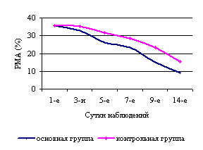 обезболивания составляла 65 минут, к 5-м и 7-м суткам возросла на 25 и 33