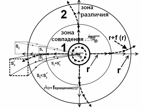 пробега как 1/(r+ fвращение(r))2. В зоне совпадения 1, (рис.1.)