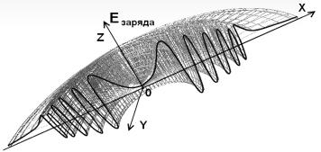 плоскими водоворотами. Заряд представлен как растянутый водоворотом хвост