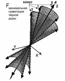 конусный взрыв при образовании чёрной дыры. Гравитация как изменяющаяся