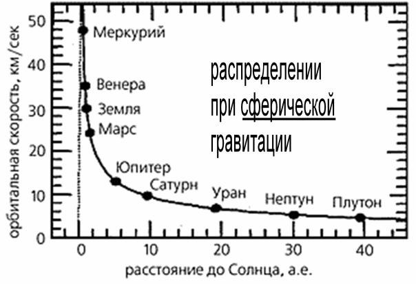 пропорционально коэффициенту 1/r2 , что приводит к орбитальной скорости планет как показано на