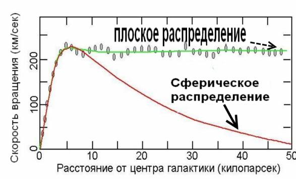 плоскую рис.4-9 что приводит к распределению орбитальных скоростей в галактике