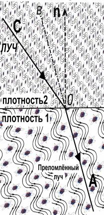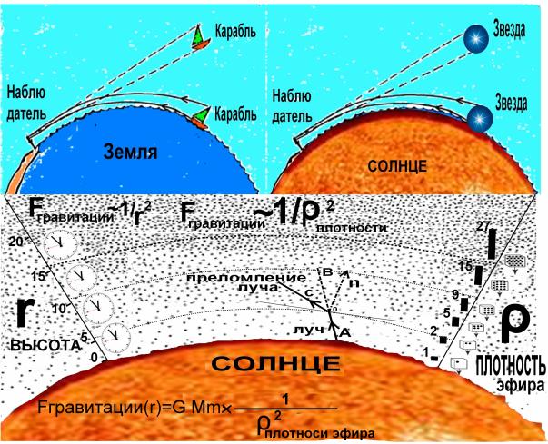 эфирной среде движется по пути наименьшего сопротивления, наименьшей плотности эфира