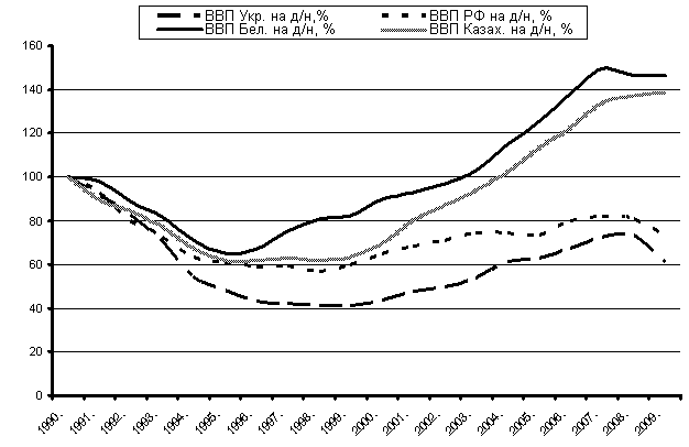 смогли достичь уровня 91–го года, а Россия только через 17 лет, Украина не