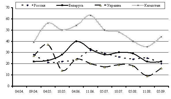 составил следующие значения: Казахстан 70 % в 1998 году; Беларусь 65 % в 1995