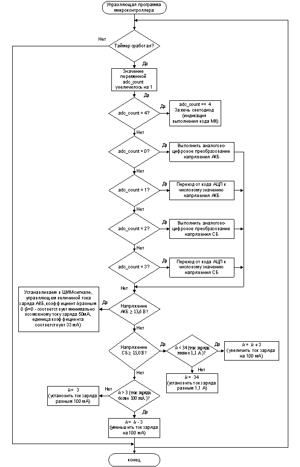 Рисунок 3 - Блок-схема алгоритма заряда АКБ