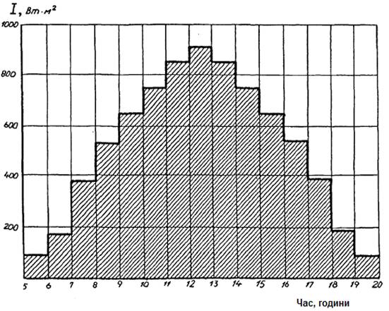 Рисунок 1 – Добовий графік надходження сонячної радіації