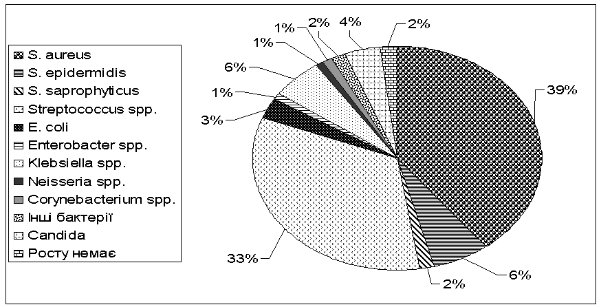 spp. – 6%, E. coli – 3% та Enterobacter