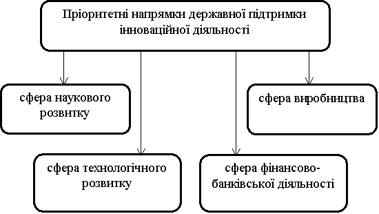 Для більш ефективного впровадження державної політики в сфері інноваційної діяльності слід виділити основні пріоритетні напрямки державної підтримки інноваційної діяльності (рис. 1).