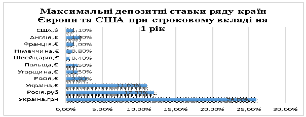Максимальні депозитні ставки ряду країн Європи та США